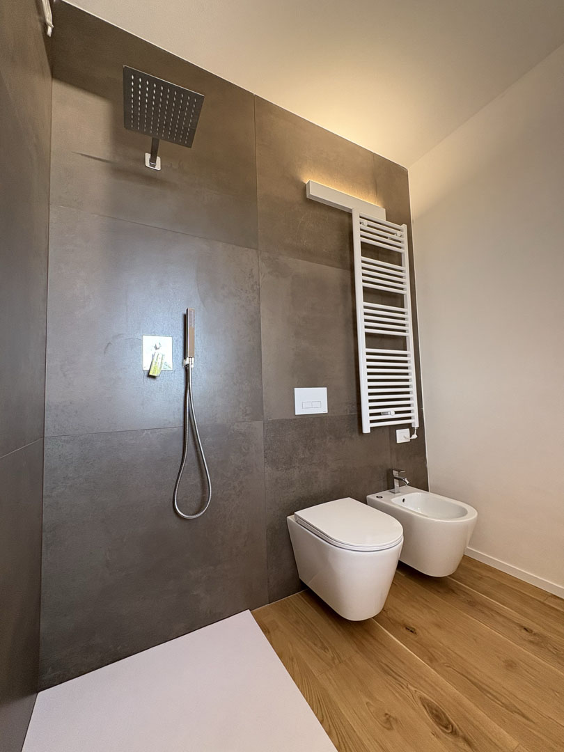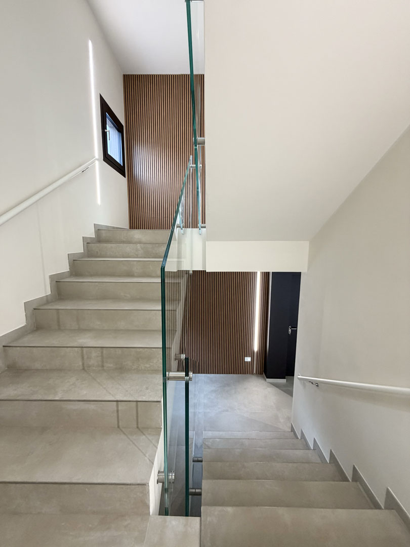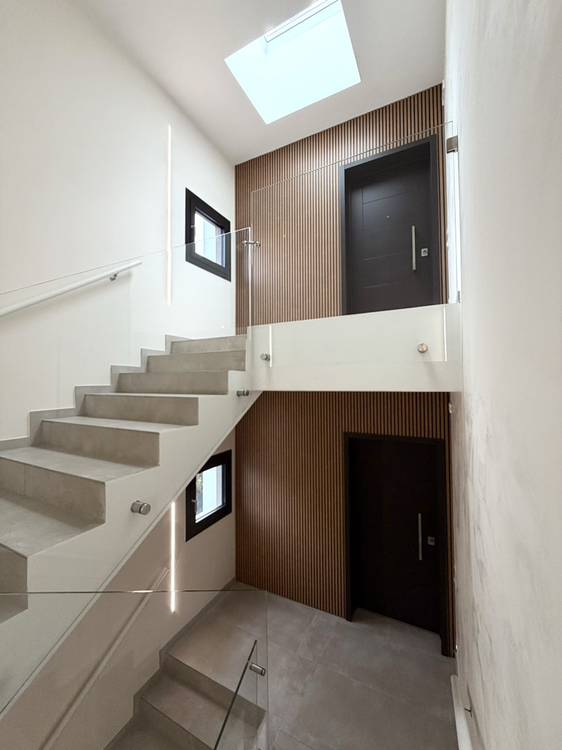 La struttura è suddivisa su tre piani fuori terra, composta da solo 2 abitazioni, al piano terra troviamo i garage, il vano tecnico, posto auto di proprietà ed il giardino privato per ogni unità abitativa. Al piano primo e secondo gli appartamenti composti da zona living, 3 camere, due bagni e ampi poggioli.